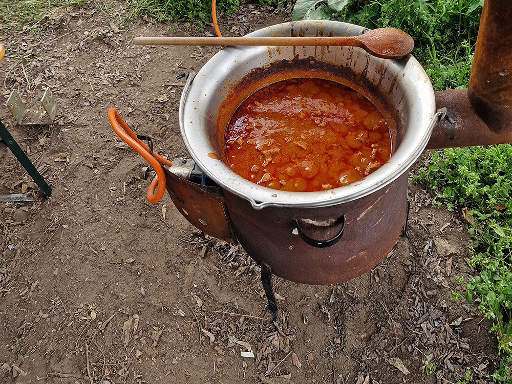 Reggeli után, 9-kor indultunk kis csapatokban szétszóródva és egy 10 perces pihenőt leszámítva, délig folyamatosan szedtük a szemetet. Sajnos, volt dolgunk bőven. Még mindig meg vagyok lepődve, hogy hogyan jut eszébe bárkinek is eldobni a megevett-megivott gyorséttermes csomagját. Mert az út széléről, amit összeszedtünk az majdnem mind ilyen jellegű szemét volt. Ami a legnagyobb kihívást jelentette, az egy teljes tanya elásott maradéka volt. Ezen a területen csákánnyal és ásókkal próbáltuk előhalászni a nagyon vegyes hulladékot, amit az eső (vagy gazdája) már szinte teljesen betemetett a föld alá.