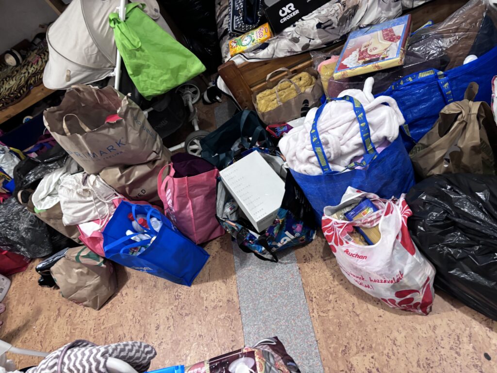 Szinte azonnal megérkeztek az első adományok. Az akció végére szinte mozdulni sem tudtunk a sok adománycsomag miatt: közel 25 zsák adomány várt átadásra!