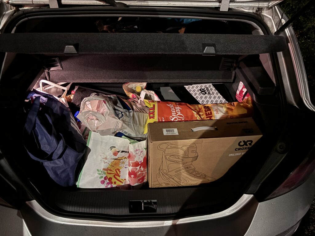 A sok-sok adományt látva ezúttal két autóval készültünk és szükség is volt rá, minden helyet kihasználtunk. Az autókba már délután bepakoltunk, aztán munka után nekivágtunk a városnak és fél hét körül megérkeztünk Csömörre, ahol a család apraja-nagyja már nagyon várt minket.